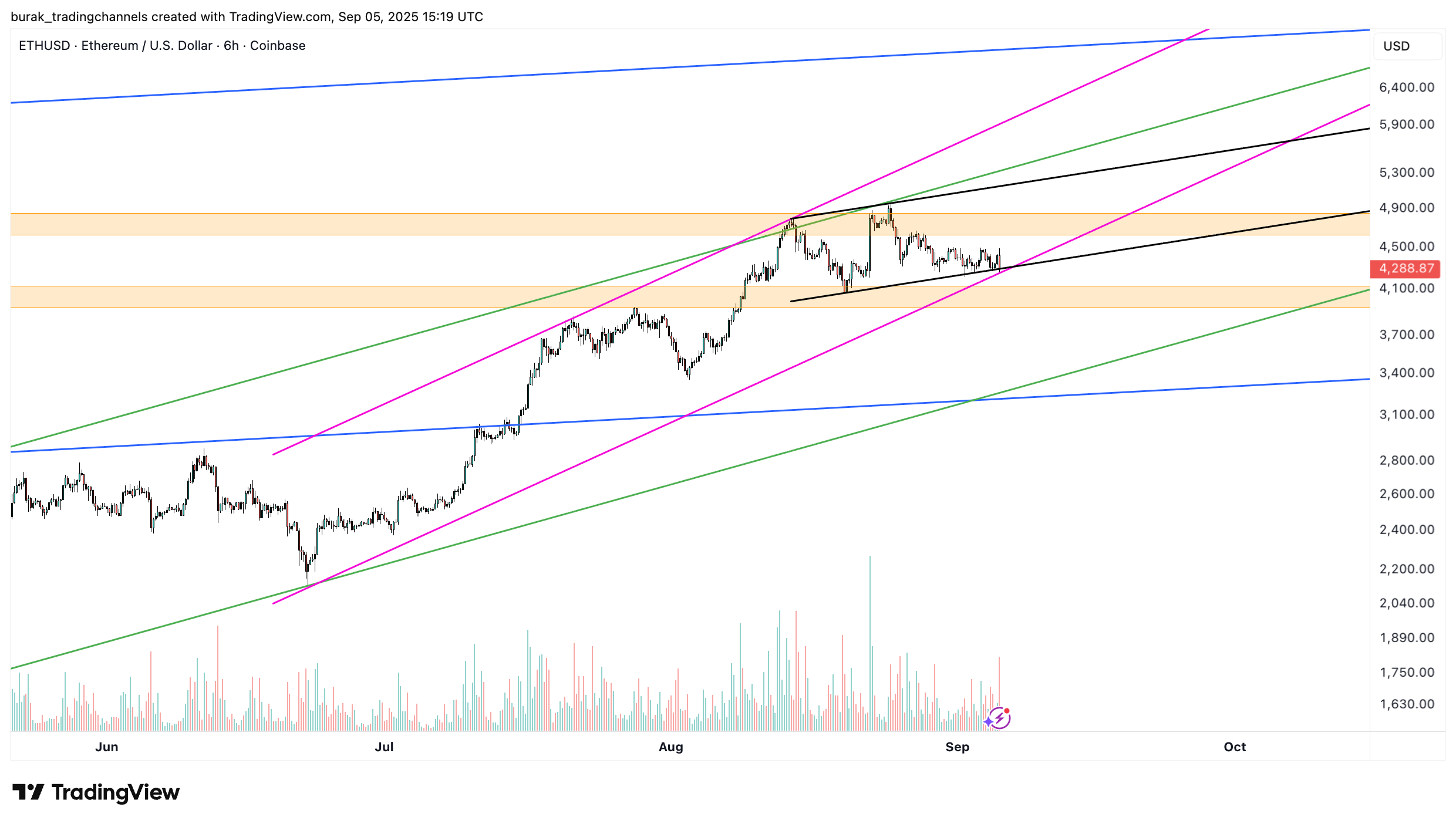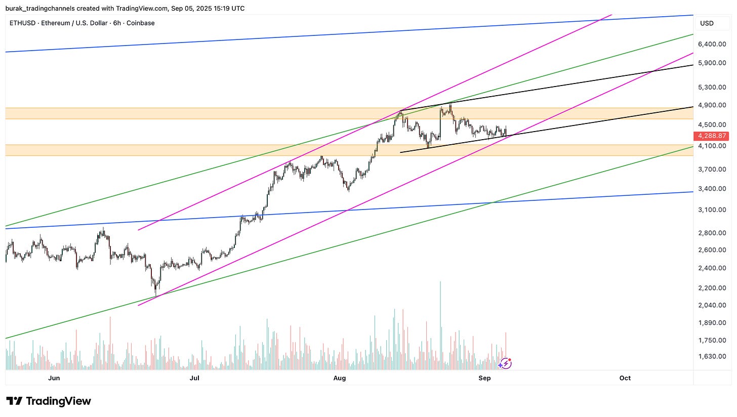 ETHEREUM tested the black bottom band 4 times. If it breaks this black bottom band support and the purple potential support which is now where it is sitting, there will be a BIG SELLOFF.